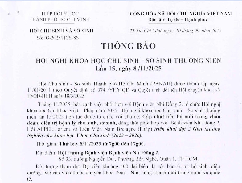 Lớp huấn luyện: SIÊU ÂM TRỌNG ĐIỂM TRONG ĐÁNH GIÁ VÀ XỬ TRÍ CHỨC NĂNG TIM – PHỔI Ở TRẺ SƠ SINH - (6/11/2025)